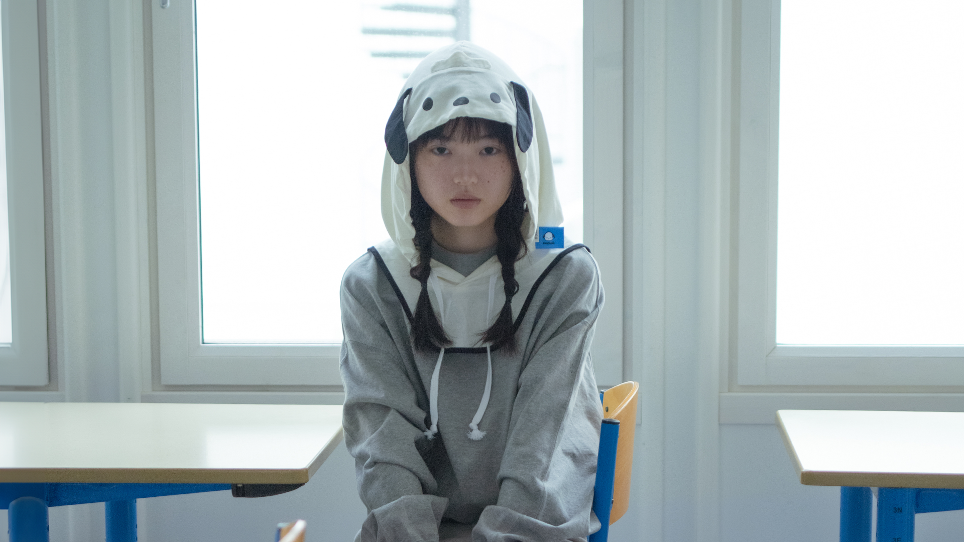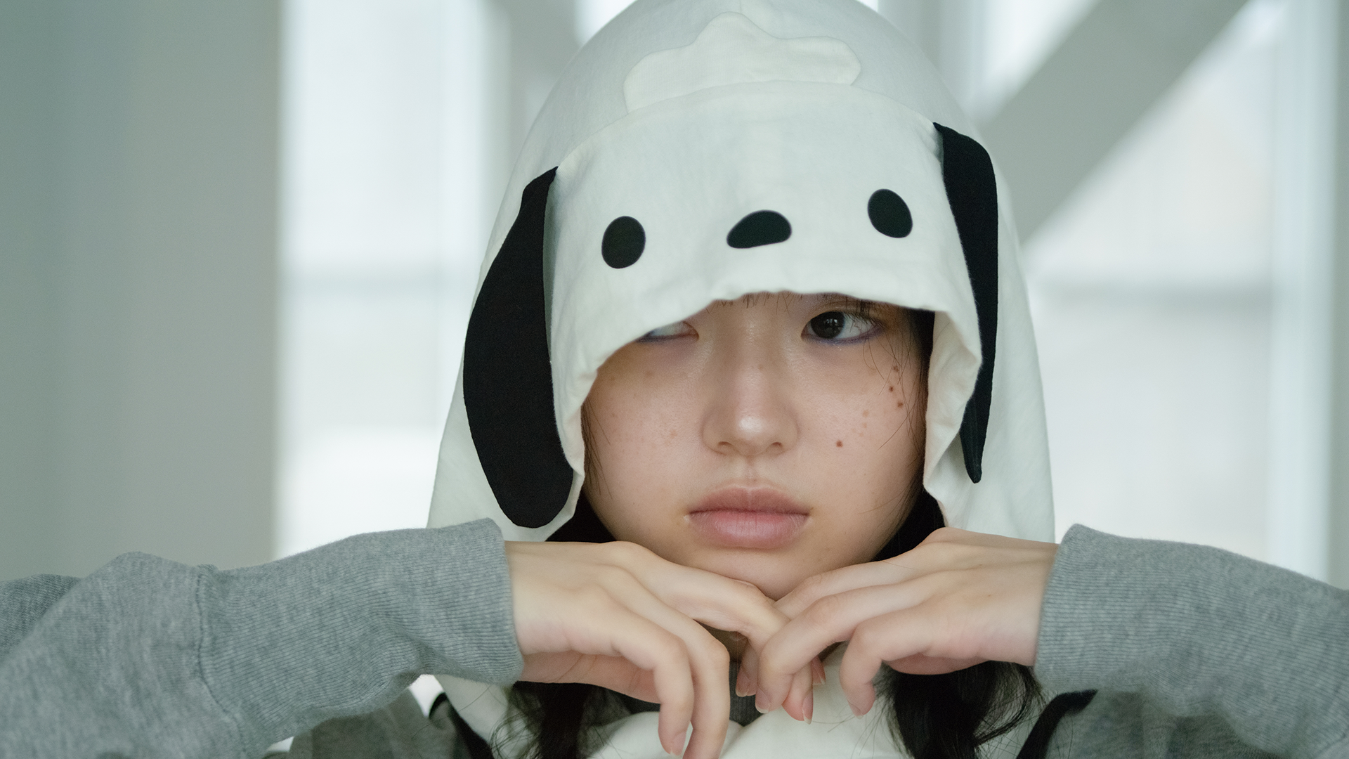 フーは、パーカーを帽子部分だけにしたようなフード(バラクラバ)型。